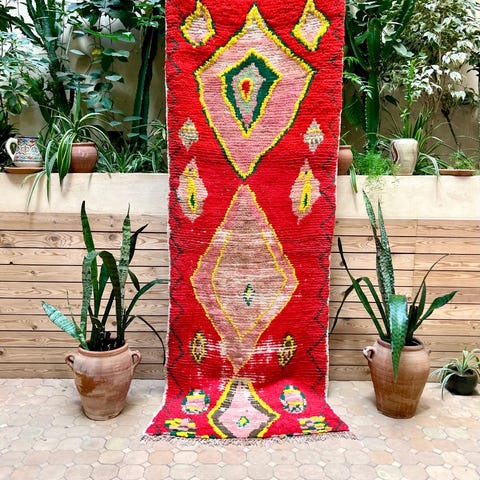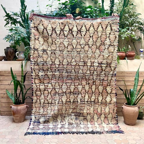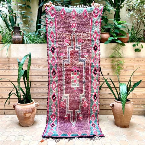 Vanha aito paimentolaismatto kauniissa sävyissä. Boujaad matot tulevat Marokon Keski-Atlas vuoristosta. Alueen matot ovat tunnettuja ainutlaatuisista designeista ja väreistään. Vanhoissa Boujaad-matoissa solmut ovat symmetrisiä, joten kuviot näkyvät selkeästi maton pinnassa. Matot ovat myös helppoja ylläpidettäviä. Vanhat vintage-matot ovat tehty kylän omista lampaista perheen omiin tarpeisiin. Villa on värjätty luonnonväreillä esimerkiksi kasveilla, juurilla, yrteillä ja sienillä. Kuvioinnit ovat berberi-kieltä, joilla maton solmivat naiset ilmaisevat itseään.