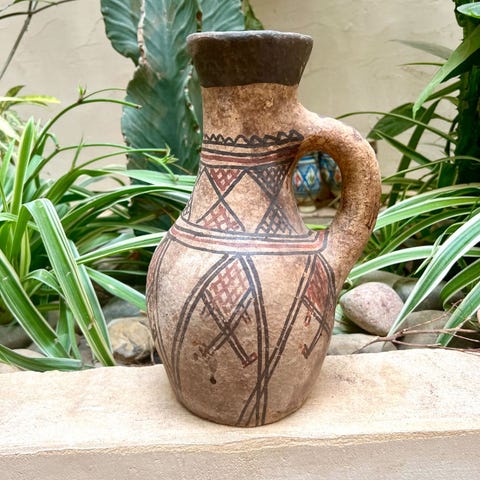 Tämä Rif-ruukku on taiteen ja perinteikkään kulttuurihistorian ilmentymä. Pohjois-Marokon Rif-vuorten käsityön taitajat säilyttävät muinaisen keramiikkaosaamisen, jonka tiedetään esiintyneen ensimmäisen kerran noin 8000 vuotta sitten! Nykyään käytetyt tekniikat ja designit vastaavat edelleen alkuperäisiä. Upea taideteos kotiisi tai julkiseen tilaan!