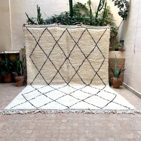 Marmoucha on heimo, joka asuu kuuluisamman Ouarainin vieressä. Näiden matot ovat tunnetuimpia marokkolaisista matoista. Maton kuvioinnit ovat heimokieltä, jotka puhuvat omaa ikuista kieltään ja ovat myös itseilmaisun keino berberinaisille. Näitä mattoja jo Alvar Aalto, Le Corbusier ja lukuisat muut arkkitehdit suosivat. Aitoja vanhoja beni ouarain ja Marmoucha-mattoja ei ole enää runsaasti jäljellä, joten vuosikymmenten saatossa tämä on keräilykappale. Koko noin 335x205cm+ hapsut perinteen mukaan toisessa päässä. Matto on kevyt ja helppo imuroida ja käsitellä. Tyylikkäästi patimoitunut yksilö.