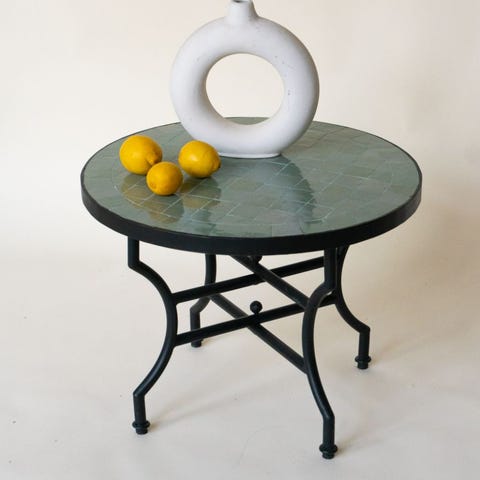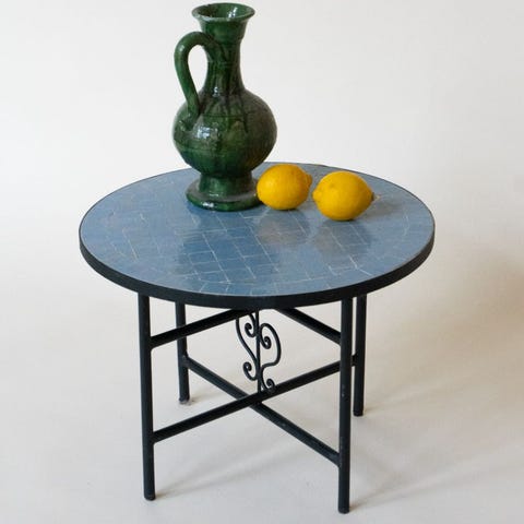 Tässä jämäkässä pöydässä kaunis zellige-mosaiikki yhdistyy kokoontaitettavaan, tukevaan rautarunkoon. Sopii sisä- ja ulkotiloihin.
