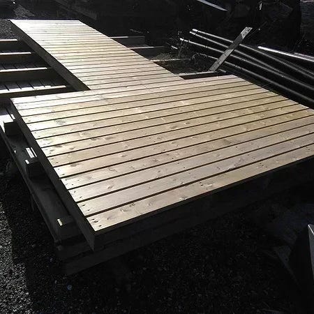 Kestopuusta tehty ponttoonilaituri(T-malli)pääty ja