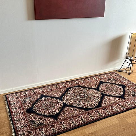 Vaalea itämainen matto,todella ohut,silkkiä?Ikä n.20-vuotta ei ole ollut käytössä aikoihin vaan pakattuna mattopussissa.Mitat 138×204cm.Kunto hyvä.Hinta 150e toki voi tarjota hintaa,nouto tai postitus.
