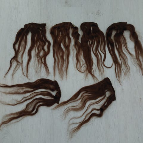 Myydään aitohius clip on pidennykset 45cm, punertava keskiruskea tuuhennus 3 osiota. Kerran kiharakampauksessa käytetty, ja suoristettu (3+2+1) 45e