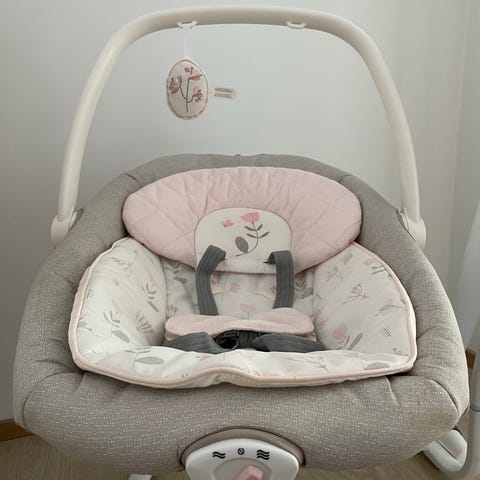 Joie sitteri. Voi keinuttaa ja saa myös värinää, luonnonääniä ja musiikkia! Saa laitettua kolmeen eri asentoon ja lähes makuuasentoon.Säädettävä jalkatuki.