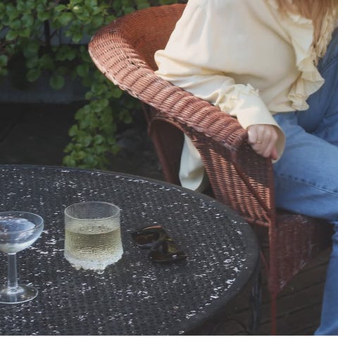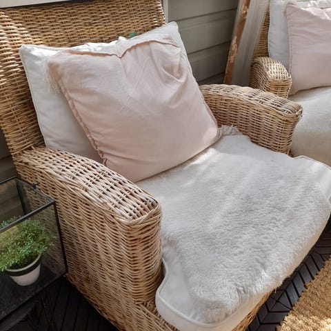 Rottinkinen tuoli, tyynyn saa mukaan mutta ei ole enää hyväkuntoinen.