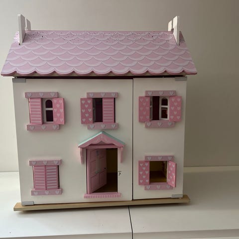 Noin 35v vanha paljon leikitty, edelleen ehjä ja siistikuntoinen nukkekoti leikkeihin.
