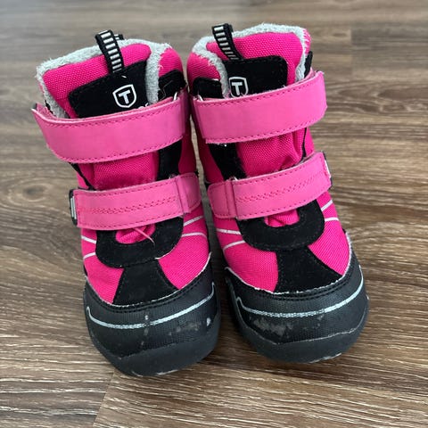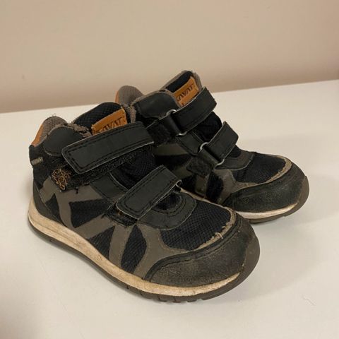 Alle 5 kertaa jalassa olleet välikausikengät. Viime syksynä ostettiin, eivätkä enää mahdukaan jalkaan. Käsitelty kenkien kosteudensuojasuihkeella.