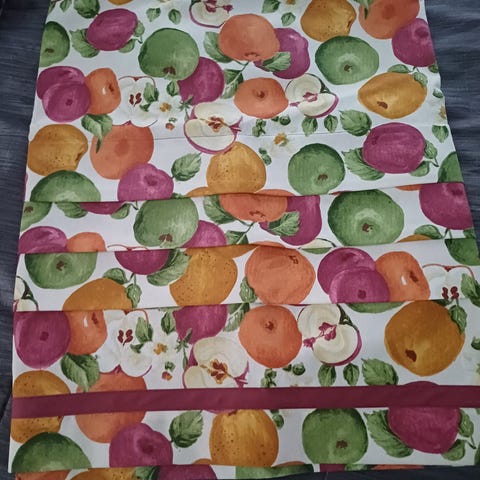 Myydään itseommeltu kappaverho, koko noin 58x270cm. Keskellä sauma, joka lähes huomaamaton kun ikkunassa paikoillaan rypytettynä. Verhossa tankokuja. Kissatalous.