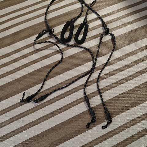 Koiran talutushihnat kahdessa värissä: neonpinkki ja neonkeltainen. Hihnoissa on kädensija ja metallinen lukko, joka kiinnittyy koiran pantaan tai valjaisiin. Sopivat koiran ulkoilutukseen ja lenkkeilyyn. Materiaali vaikuttaa olevan synteettistä nauhaa, joka on kevyt ja helposti puhdistettava.