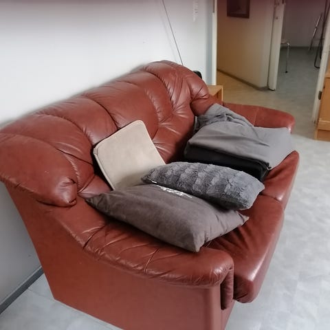 Kapea kahden istuttava vuodesohva. Moda-vuodesohva on 145 cm leveä, avautuu 120 x 200 cm varavuoteeksi. Sisältää säilytystilaa. Paino 50kg. Istuinkorkeus 45cm. Vain nouto. Maksu mieluiten mp.