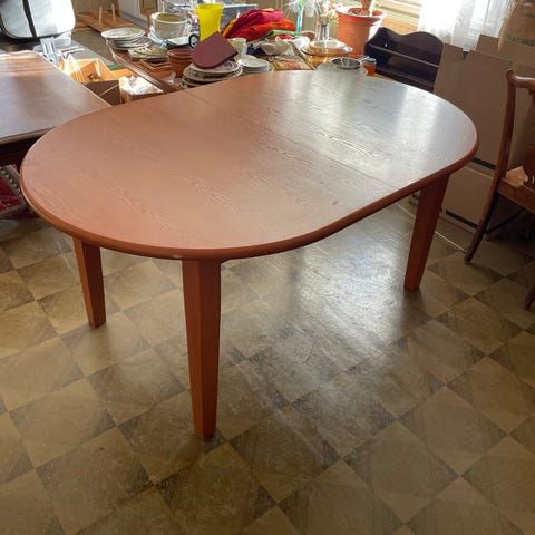Materiaali puu, jatkopala 45cm x 100cm, jalat pulteilla kiinni, pinta naarmuuntunut, käytön jälkiä