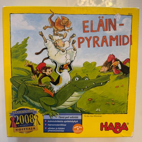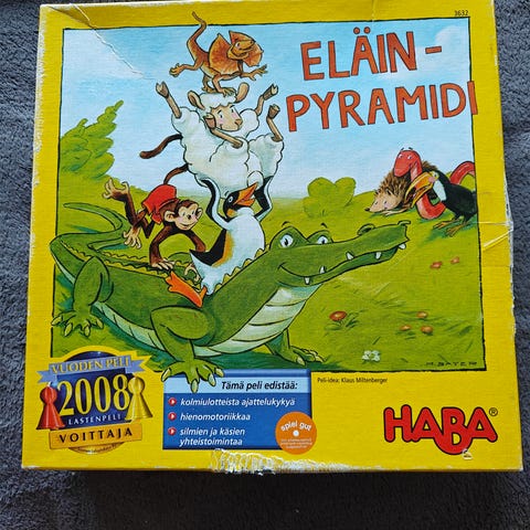 Haba Maxi Eläinpyramidi Suuri seikkailu on lasten lautapeli, jossa rakennetaan eläimistä muodostuvaa pyramidiä. Pelissä on puisia eläinpelinappuloita, kuten kirahveja, krokotiileja, flamingoja ja muita eläimiä, sekä pelilauta, kortteja ja noppa. Peli on suunniteltu useammalle pelaajalle ja harjoittaa muun muassa motoriikkaa, tasapainottelua ja yksinkertaista taktikointia. Peli on saksalaisvalmisteinen ja soveltuu perhepeliksi lapsille valmistajan ikäsuosituksen mukaisesti.