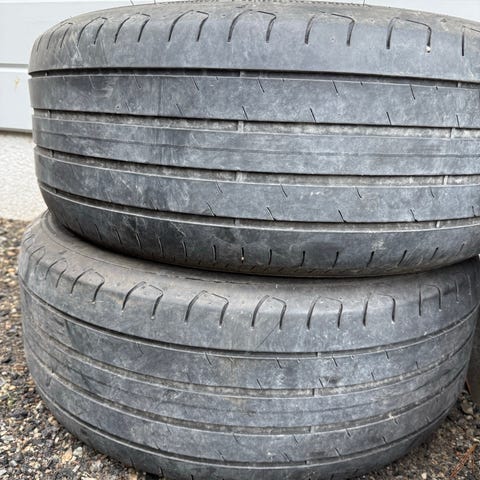 3 mm tai hieman enemmän. Erittäin tasaisesti kuluneet ja huisin kestävät huippurenkaat. XL, vannesuoja, valmistettu Saksassa. DOT / paistettu 02/21.