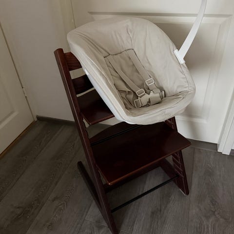 Erinomaisessa kunnossa oleva vauvan Tripp Trapp New Born -kaukalo. Saa säädettyä kahteen korkeuteen. Mukana lelukaari. Pesty hajusteettomalla, ei lemmikkikoti.