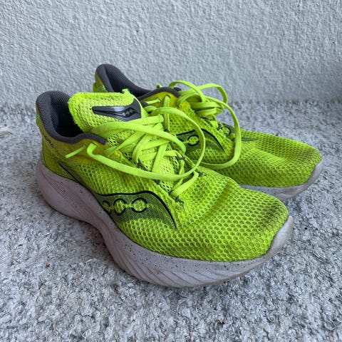 Saucony juoksukengät, koko 42,5. Polkujuoksuun hankittu, hieman liian leveät itselleni. 60 km hölkätty Stravan mukaan.