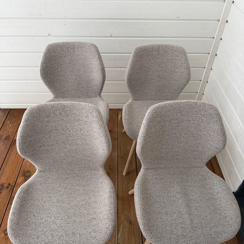 Myydään kuvanmukaiset ruokailuryhmän tuolit. Istuinosat kaipaavat joko uudelleenverhoilun tai pesun. Mukana tulee kaikille kuvanmukaiset päällyset, joita on useampi vielä kuvassa olevien lisäksi. Puuosissa on jonkin verran kulumaa. Vain nouto, joka on mahdollinen huhtikuun alussa, kun meille saapuu uudet tuolit. Kaikki mieluusti samalle hakijalle. Hp. 300 e. Maksu mp.