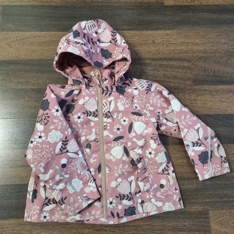 My wearin upealla eläinkuviolla oleva välikausitakki.