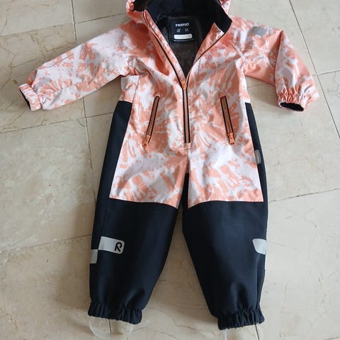 Myydään vaaleanpunaisella pohjalla oleva tyttöjen kukallinen haalari. Punteissa lenksut, irroitettava huppu ja sisäpuolella säädettävät kuminauhat. Merkki Reima Tec