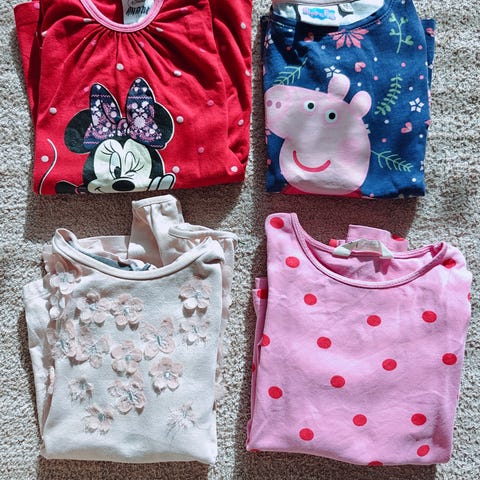 Settiin kuuluu mintunvihreä, valkopilkullinen pitkähihainen röyhelöhelmainen paita sekä mustavalkoraidallinen pitkähihainen paita. Toridiili tai nouto Klaukkalasta.