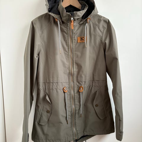Valkoinen Boy-Cot tuulitakki, koko 36. Verkkovuori ja vetoketjutaskut. Kiristettävä helma & huppu.