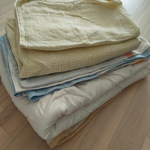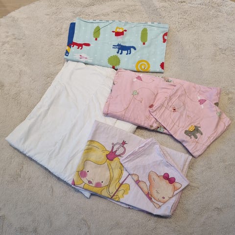 Lapsen peitto ja tyyny, sekä kahdet pussilakanasetit.
