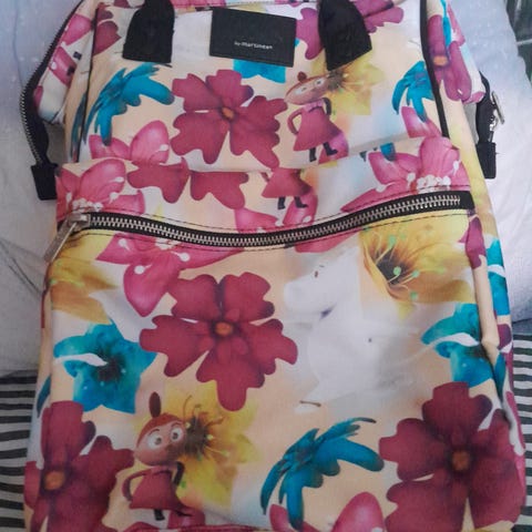 Käyttämätön reppu. Etuosassa syvä vetoketjutasku. Repun mitat n 38 X 29 x 11 cm.