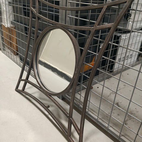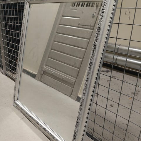 Metallireunainen peili. Korkeus 50 cm, leveys 40 cm