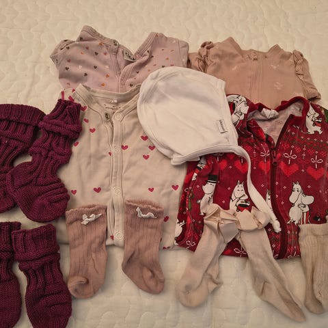 Vaatetta tytölle koko 56-110cm, ainoastaan ruskeat housut, jotka näkyvät ensimmäisessä kuvassa ovat kokoa 130 cm. Nallekylpytakki koko 110 cm, vaaleansininen ulkohaalari koko 98-104 cm, Reima ulkohaalari noin 98 cm, tästä kokomerkinnät kuluneet pois, polvissa kulumaa. Lotta & Lassi fleecetakki koko 104cm, Tutta trikoohaalari, säädettävät olkaimet koko 92 cm, mustat housut 92 cm. Punaiset samettihousut 74-80 cm, keltainen 'farkku' takki koko 80 cm, punainen fleecehaalari 62 cm, lyhythihainen-lahkeinen kesäbody 80 cm, punavihreä potkuhaalari 56 cm, paitoja 80 cm. Fleecehattu 56-60cm, 2 kpl punaisia kypärämyssyjä, minnilippis, kesähattu 74 cm. Kaupan päälle aurinkolasit (näissä on muutama naarmu)+lasikotelo sekä maapallo-aiheinen kirja. Aurinkolasien koko voisi olla noin 5-10 v. Vaatteita kaikkiaan iso kassillinen. Huom! Jossain vaatteessa saattaa olla tahra, vaatteet pääosin hyväkuntoisia. Hinta yhteensä 10 euroa, nouto Myllypuro, mobilepay ei käy. Tarvittaessa voin tuoda Myllypuron metroasemalle.