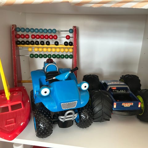 Both sides can be play. One side is with microwave and stove, the other is with blackboard, sink (missing, we putted a plastic box instead), fridge and dishwasher.