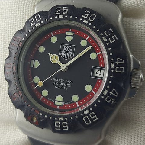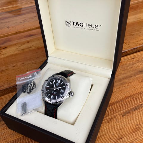 Tarjolle täysin uudenveroisessa kunnossa oleva ja tuoreilla papereilla varustettu TAG Heuer F1. Erittäin näyttävällä mustalla hiilikuitu-taululla jossa pirteyttä tuovat keltaiset yksityiskohdat. Teräksinen kuori yhdistetty laadukkaaseen teräsrannekkeeseen viimeistelevät kokonaisuuden. Safiirilasi suojaa kellon etupuolta kun taas teräksisen takakannen alla tikkaa erittäin tarkasti huoleton kvartsikoneisto. Full set, kellon takuukortti on aktivoitu 11/2025.