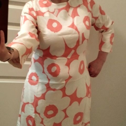 Ihana vaaleanpunainen/tummansininen Marimekon puuvillamekko, koko M. Vyö mukana, joten voi pitää monella eri tavalla. Sopii juhlaan ja arkeen. Hyvässä kunnossa.