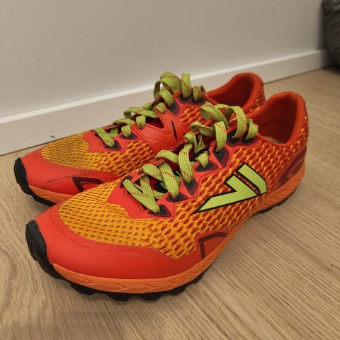 Dynafit gtx 50 core-tex juoksukengät, koko 45. Väri musta–sininen,keltaisia tehosteita. Kengissä on karkea, nappulakuvioitu ulkopohja, joka soveltuu erityisesti polku- ja maastojuoksuun. Nauhakiinnitys. Kengät on suunniteltu juoksukäyttöön.