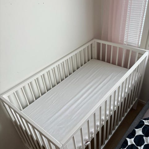 Erinomaisessa kunnossa oleva pinnasänky. Pohjan saa laskettua kolmeen eri tasoon ja laidan laskettua kuvan mukaisesti.