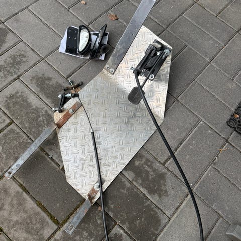 Opetus poljin sarja joka sisältää kaikki kuvassa näkyvät kiinnitys osat sekä kolmion ja kaksi peiliä matkustajalle. Alusta on tehty puusta ja sen pitäisi sopia muihin autoihin