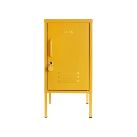 Lempinimellä "The Shorty" kulkeva pikkuinen peltikaappi sopii erinomaisesti työpöydän ääreen tai vaikkapa yöpöydäksi. Pienestä ulkonäöstään huolimatta se vetää sisäänsä yllättävän paljon tavaraa tarjoaa tarpeellista säilytystilaa sinne missä sitä eniten tarvitset. Kaunis ja käytännöllinen peltikaappi tuo väriä ja iloa tilaan sellaisenaan tai voit sovittaa sen mainiosti yhteen myös muiden peltikaappien kanssa. Tuotetiedot Väri: Tummansininen, navy Varustelu: Kaksi hyllyä, joiden paikkaa voi vaihdella sekä koukku ovessa. Ovissa on lukko ja mukana toimitetaan avain. Mitat: Korkeus 72cm, leveys 35cm, syvyys 46cm. Paino: 10 kg Kaapin kasaus: Kaappi on helppo kasata itse mukana tulevien ohjeiden avulla. Kasaus ei vaadi muita työkaluja, kuin ruuvimeisselin ovenkahvan kiinnitykseen. Taustalevyssä on valmiit reiät ja mukana toimitetaan yleisruuvit, joilla kaapin voi kiinnittää tukevasti seinään. Toimitus: Toimitetaan PostNordin kotiinkuljetuksella. Ihastuttavat Mustard Made peltikaapit Mustard Made on kahden australialaisen siskoksen (Becca & Jess) vuonna 2018 perustama tuotemerkki. Brändi on vasta alkutaipaleellaan, mutta ihastuttavat peltikaapit ovat jo löytäneet tiensä lukuisien ennakkoluulottomien sisustajien koteihin ympäri maailmaa. Pinnijalkapoikien valikoimasta löydät suosituimmat Mustard Made tuotteet kotiasi piristämään ensimmäisenä Suomessa - näitä et vielä muualta saa!