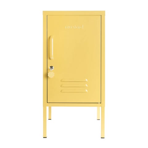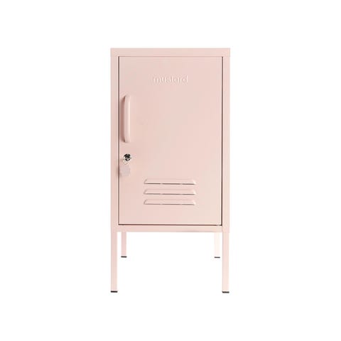 Lempinimellä "The Shorty" kulkeva pikkuinen peltikaappi sopii erinomaisesti työpöydän ääreen tai vaikkapa yöpöydäksi. Pienestä ulkonäöstään huolimatta se vetää sisäänsä yllättävän paljon tavaraa tarjoaa tarpeellista säilytystilaa sinne missä sitä eniten tarvitset. Kaunis ja käytännöllinen peltikaappi tuo väriä ja iloa tilaan sellaisenaan tai voit sovittaa sen mainiosti yhteen myös muiden peltikaappien kanssa. Tuotetiedot Väri: Vaaleansininen Varustelu: Kaksi hyllyä, joiden paikkaa voi vaihdella sekä koukku ovessa. Ovissa on lukko ja mukana toimitetaan avain. Mitat: Korkeus 72cm, leveys 35cm, syvyys 46cm. Paino: 10 kg Kaapin kasaus: Kaappi on helppo kasata itse mukana tulevien ohjeiden avulla. Kasaus ei vaadi muita työkaluja, kuin ruuvimeisselin ovenkahvan kiinnitykseen. Taustalevyssä on valmiit reiät ja mukana toimitetaan yleisruuvit, joilla kaapin voi kiinnittää tukevasti seinään. Toimitus: Toimitetaan PostNordin kotiinkuljetuksella. Ihastuttavat Mustard Made peltikaapit Mustard Made on kahden australialaisen siskoksen (Becca & Jess) vuonna 2018 perustama tuotemerkki. Brändi on vasta alkutaipaleellaan, mutta ihastuttavat peltikaapit ovat jo löytäneet tiensä lukuisien ennakkoluulottomien sisustajien koteihin ympäri maailmaa. Pinnijalkapoikien valikoimasta löydät suosituimmat Mustard Made tuotteet kotiasi piristämään ensimmäisenä Suomessa - näitä et vielä muualta saa!