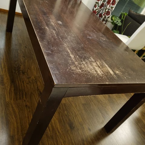 Pöydän kannessa käytön jälkiä, muuten kunto hyvä.