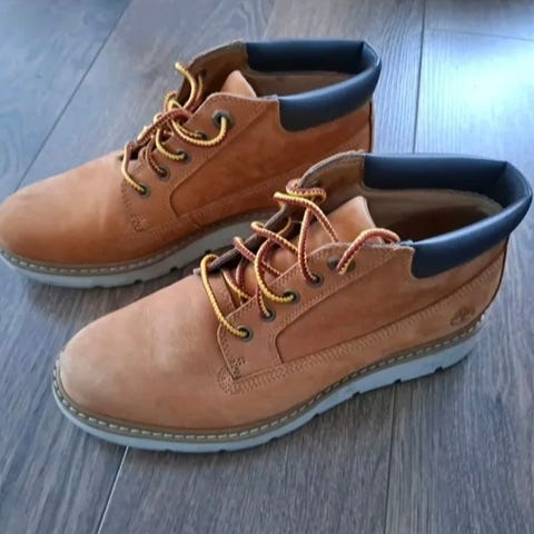 Timberland lasten nilkkurit, koko 36, unisex-malli. Väri vaaleanruskea (ns. wheat), musta pehmustettu varren yläosa. Nauhakiinnitys ja paksu kumipohja karkean kuvioinnin ansiosta. Materiaalina päälliosassa nahka, sisäosa tekstiiliä. Sopivat arki- ja ulkokäyttöön lapsille ja nuorille. Kengissä näkyy käytön jälkiä erityisesti kärjissä, pohjat kuvioinniltaan vielä selkeät.