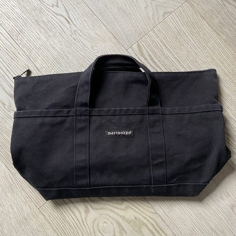Marimekko mini matkuri, väri musta. Kunto on mielestäni oikein hyvä, jotain pieniä jälkiä voi olla. Made in Finland.