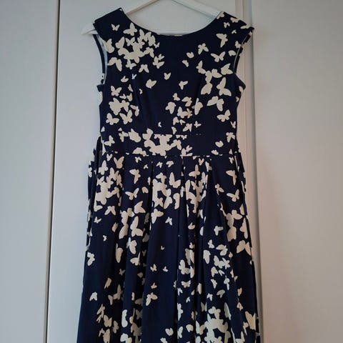 Smashed Lemon naisten mekko koossa S. Hihaton, polvipituinen malli, jossa kietaisumainen yläosa ja poimutettu vyötärökaitale. Kuosina monivärinen, graafinen printti vaalealla pohjalla. Sopii arki- ja juhlakäyttöön.