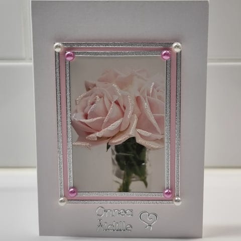 Vauva onnittelukortti sinisellä kannella ja vauvakuvalla. Kortissa kohokuvioitu hopeasävyinen kehys kuvan ympärillä sekä teksti "Vauva Onnittelut" etukannessa. Sisäpuoli on tyhjä omalle tervehdykselle. Sopii vauvan syntymän onnitteluun tai muuhun vauva-aiheiseen tervehdykseen.