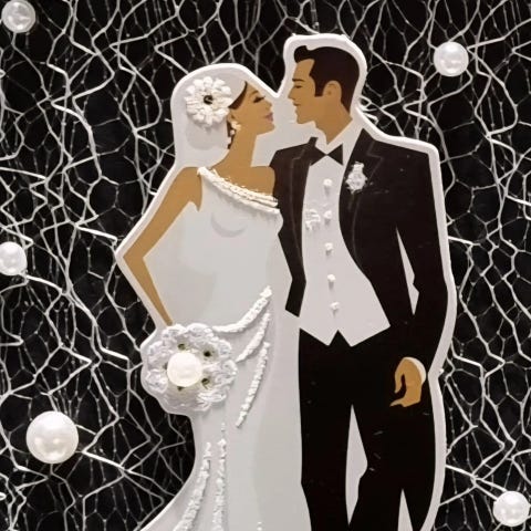 Uniikki Hääkortti valkoinen kansikuva hääpari