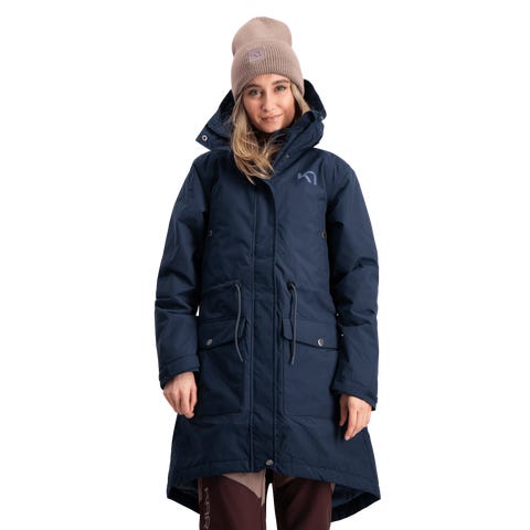 Tyylikäs, lämmin ja mukava talviparka, jossa naisellinen design. Monia käteviä taskuja, vyötäröllä kiristysnauha ja säädettävät hihansuut. Kari Traa Helena Parka on veden- ja tuulenpitävä, ja siinä on pitkä ja mukava istuvuus, joka sopii täydellisesti arkikäyttöön kylminä päivinä. Voit helposti kiristää vyötäröäsi, jos haluat naisellisemman ja räätälöidymmän istuvuuden. Talvitakki on hyvin eristetty 60 g:n täytteellä, joka pitää olosi mukavana ja lämpimänä kylmän koittaessa. Pidempi malli antaa lisäsuojaa vartalolle. Erittäin korkea kaulus ja suuri huppu pitävät tuulen ja kylmän poissa. Suuri osa takista on valmistettu kierrätetyistä materiaaleista ympäristön suojelemiseksi. Takana oleva halkio mahdollistaa suuremman liikkumisvapauden. Tarranauhoilla säädettävät hihansuut. Yksityiskohdat:- Hengittävä: Kyllä - Huppu: Kiinteä - Tasku(t): Kaksi painonapillista rintataskua, edessä kaksi painonapillista käsitaskua - Vyötäröllä säätövaihtoehdot - Edessä tuulilista, jossa painonapit - Takana halkio - Pieni, hillitty logo rinnassa vasemmalla - Tarranauhoilla säädettävät hihansuut