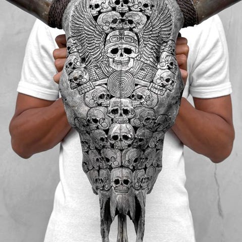EI VARAUKSIA - UPEA SUURI HARMAA KÄSIN KAIVERRETTU HÄRÄN KALLO - Infinity Mot