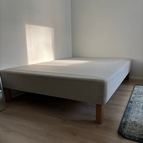 Molemmat oikein hyvässä kunnossa, puhtaita ja ehjiä. Molemmat runkopatjat kokoa 90x200cm, käytetty parisänkynä (petari päällä). Jalkojen kanssa korkeus 38cm, pelkän runkopatjan korkeus 23cm. Jalat eivät ole Ikean, mutta tulevat patjojen mukana (tai ilman, jos niin halutaan).