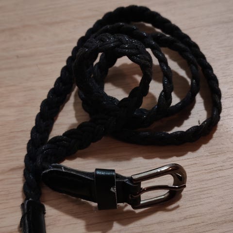 Naisten vyöt, väri musta. Ylemmässä vyössä on leveä joustava kuminauhavyö ja edessä hakaskiinnitys. Alempi vyö on nauhoilla solmittava ja koristeltu pyöreillä niiteillä tai helmimäisillä koristeilla. Sopivat käytettäväksi esimerkiksi mekkojen tai tunikoiden kanssa vyötärön korostamiseen.
