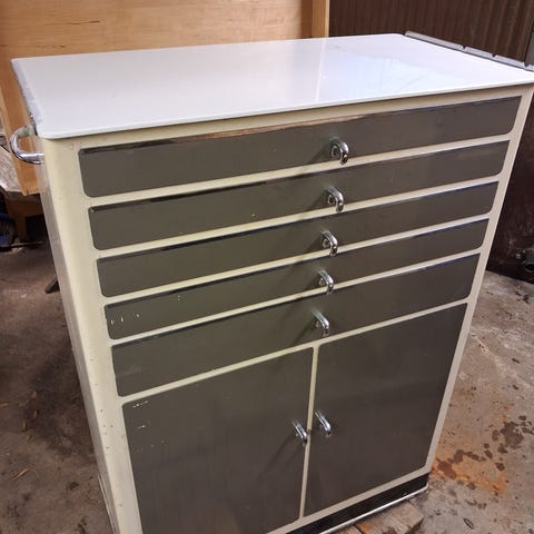 Tällä kaapilla voit pitää tavarasi poissa näkyviltä. Kappale on hyvässä kunnossa kuten kuvissa näkyy, laatikon päällä on Art Deco -nappi.