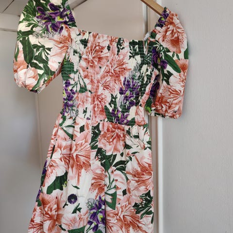 H&M divided olkaimeton shortsipuku 36 koossa. Vähän käytetty, oikein siisti. Hyvä kuminauha yläosassa ja vyötäröllä. Viskoosia. Tummansininen/ sininen/ oranssi / valkoinen .