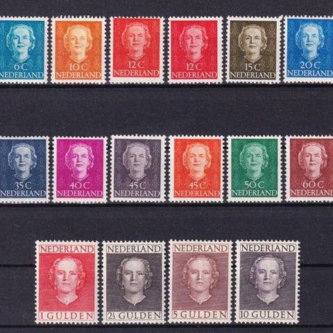 Alankomaat 1946 – Kuningatar Wilhelmina, Konijnenburgin suunnittelemat korkeiden arvojen merkit – NVPH 346/349Katalogiarvo € 455,00Katso liitetyt skannaukset yksityiskohtia varten.Lähetys rekisteröidään.