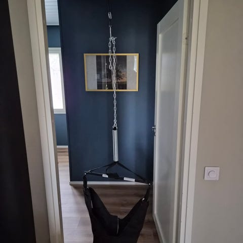 Emma hyppykiikku vauvalle. Tummapohjainen, tikattu kangas, jossa kilpikonnakuvioita. Kiikku kiinnitetään ylhäältä koukulla ja hihnoilla. Tuotelapussa varoitustekstit suomeksi, muun muassa suositeltu yhtäjaksoinen käyttöaika 10–15 minuuttia ja enimmäispaino 12 kg. Soveltuu sisäkäyttöön oveen tai muuhun sopivaan kiinnityspisteeseen valmistajan ohjeiden mukaan.